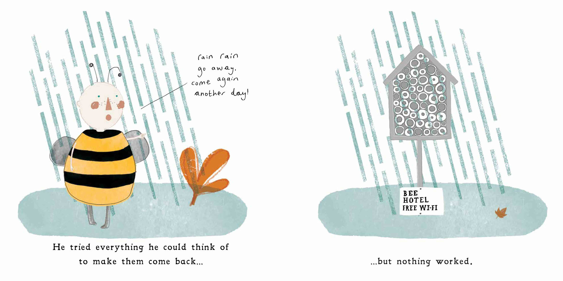 The boy in this debut picture book is fascinated by the bees in his garden, and is puzzled and saddened when they disappear one rainy day. What can have caused them to leave, and is there anything he can do to get his bumble back? Nothing he tries is successful, but things start to look a little brighter with the arrival of Spring. A gentle, quirky introduction to the cycles of nature, with an important and highly topical message about the value of bees to our world.